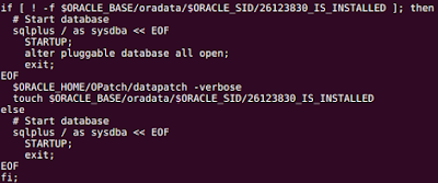 Finally startDB.sh script was modified to have a hook which control if the post apply stage of the patch was applied or not, here the logic: