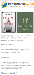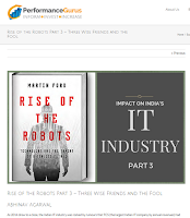 An inevitable counter-argument to all this unease generated by the "rise of the robots" is the "humans are underrated" palliative. Championing this is Tom Davenport (of "Competing on Analytics" fame) who now talks of "amplified intelligence" (which unfortunately has more the stench of a seo-optimized buzzword than anything substantial at this point) - where "smart" humans work to "augment" "smart" machines. Then there is also Geoff Colvin, who penned the insightful 2008 book, "Talent Is Overrated", and who has returned with "Humans Are Overrated". I have yet to read Colvin's latest book, so judgment day is reserved on the book, but to Davenport's argument, some of the evidence suggests an easy refutation - "In his 2007 book Super Crunchers, Yale University professor Ian Ayres cites study after study showing that algorithmic approaches routinely outperform human experts. When people, rather than computers, are given overall control of the process, the results almost invariably suffer." In many fields where algorithms rule the roost, to argue for human "augmentation" or "amplification" is no better than to argue for more cooks to brew the broth - we know that aphorism, don't we? In conclusion, and in many ways, the saga documented in "Rise of the Robots" calls to mind the ancient Indian tale of the four friends: In ancient India there lived four friends. Three of them were very learned, while the fourth was a simpleton, even considered a fool. The four decided to go to the capital and seek their fortune from the king. Along the way, while passing through a jungle, they came across the bones of a lion long dead. The first friend used his knowledge to assemble the bones into a skeleton. The second friend used his skills to fashion a skin over the skeleton, while the third prepared to bring the lion back to life. At this the fourth friend - the simpleton - warned his other three friends of the perils of doing so, and was roundly rebuked by the three, wiser friends. The simpleton again warned them and upon being ignored, climbed a tree for safety. The third friend used his knowledge to breathe life into the lion. I don't need to tell you how this tale ended for the three wise men. And I will end here. Buying Info: Hardcover: 352 pagesPublisher: Basic Books (May 5, 2015)ISBN-10: 0465059996ISBN-13: 978-0465059997US: Rise of the Robots: Technology and the Threat of a Jobless FutureIndia: Rise of the Robots: Technology and the Threat of a Jobless FutureThe first part was first published in PerformanceGurus on 8th August, 2015. The second part was first published in PerformanceGurus on 13th August, 2015. The concluding part was first published in PerformanceGurus on 15th August, 2015.