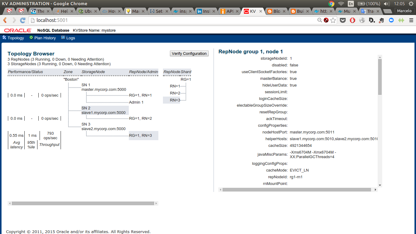 Storage Node [sn3] on slave2.mycorp.com:5000 Zone: [name="Boston" id=zn1 type=PRIMARY] Status: RUNNING Ver: 12cR1.3.5.2 2015-12-03 08:34:31 UTC Build id: 0c693aa1a5a0