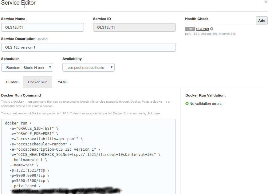docker run -d -t --net=mycorp.com -e NODE_TYPE=s -P --name slave1 -h slave1.mycorp.com oracle-nosql/net