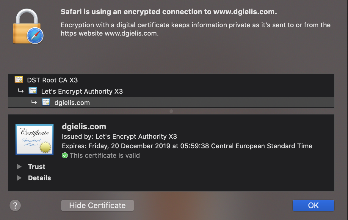 Finally, we check the certificate in a browser to see if the new one is there: