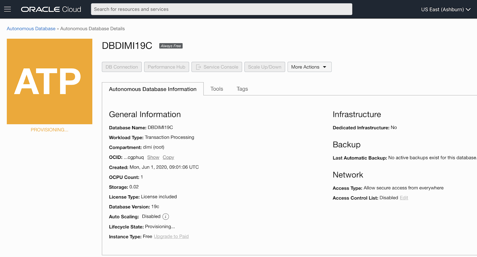 To fix the issue, log in to your Oracle Cloud Account and go to your Autonomous Database: