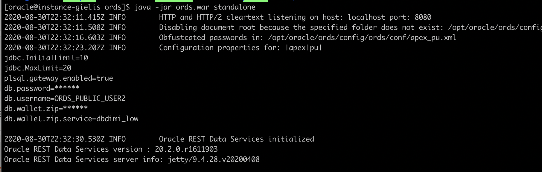 Now let's configure ORDS to connect to this user in the database: