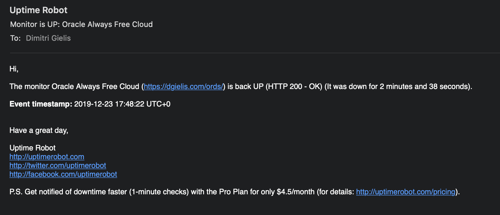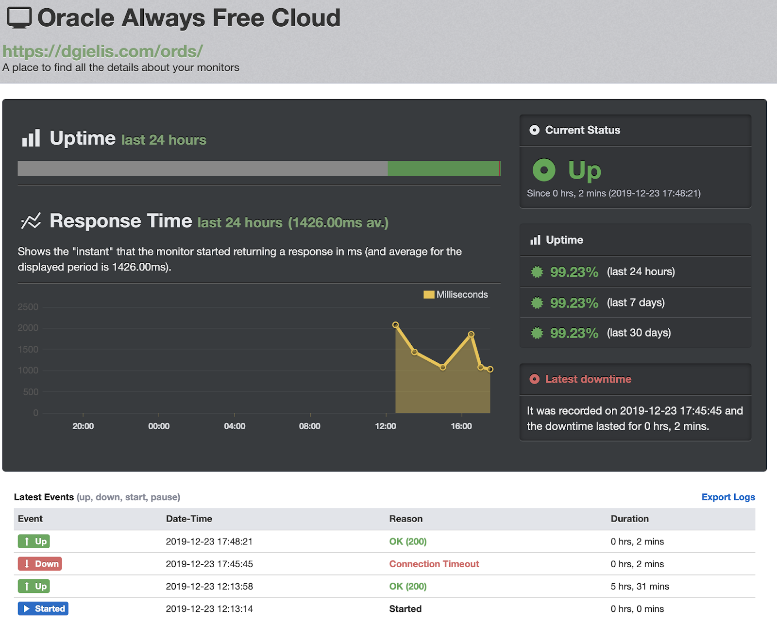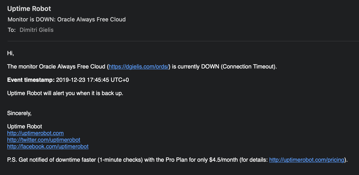 But this week there were some people complaining that although they had activity, their database was stopped anyway. I witnessed the same behavior in my account, so I reached out to Oracle and they confirmed their code to identify inactivity, is not properly accounting for APEX/ORDS usage. They are already working on a fix, which they hope to apply very soon. I will update this post when I get confirmation the fix is in the data centers.