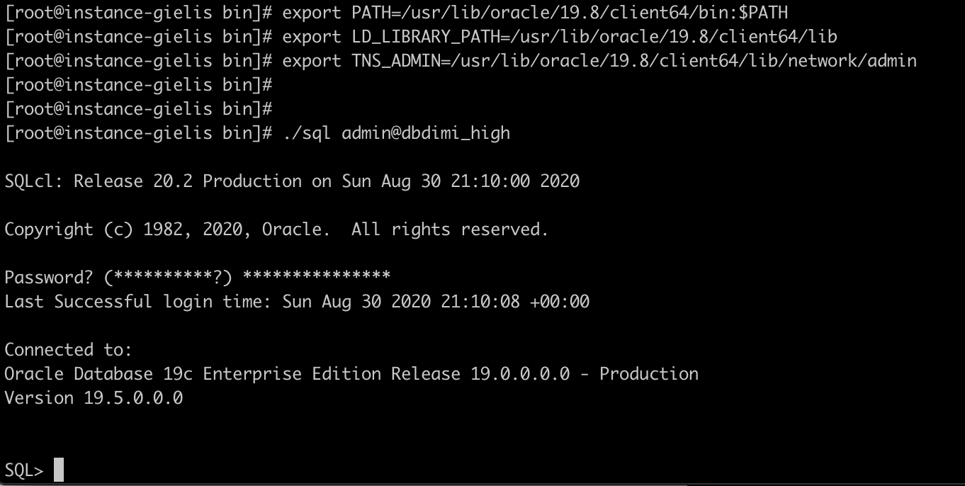 If for some reason something is not working any longer, follow the steps again in the blog post how to run sqlcl from the compute instance to ATP.