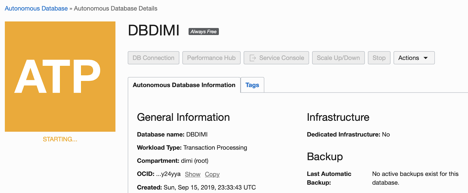 - A database that is automatically or manually stopped and stays inactive for 90 days, cumulative, may be reclaimed and permanently deleted. Inactivity measurements leading up to 90 days are based on the database being inactive or in the stopped state. Starting a stopped database resets these measurements to zero.Start an Always Free Autonomous Database by clicking the Start button on the Oracle Cloud Infrastructure console. Start a stopped Always Free Autonomous Database before 90 days to avoid losing access to its data.