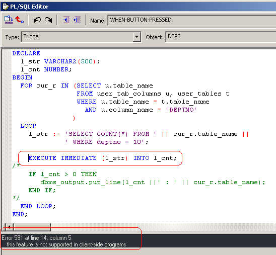 Home » Developer & Programmer » Forms » EXECUTE IMMEDIATE( ) (Developer 6i, 6, Windows Xp)