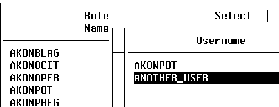 Let him try again. If it still doesn't work, go back to Action menu, Admin > and Security. Create a role (role name may be the same as username). "Select Users" (which belong to this role) is supposed to be done using the list of values key; on my Reflection terminal emulator, it is the "End" key (for the list of available actions, press <Ctrl + K>). You'll have to type username.