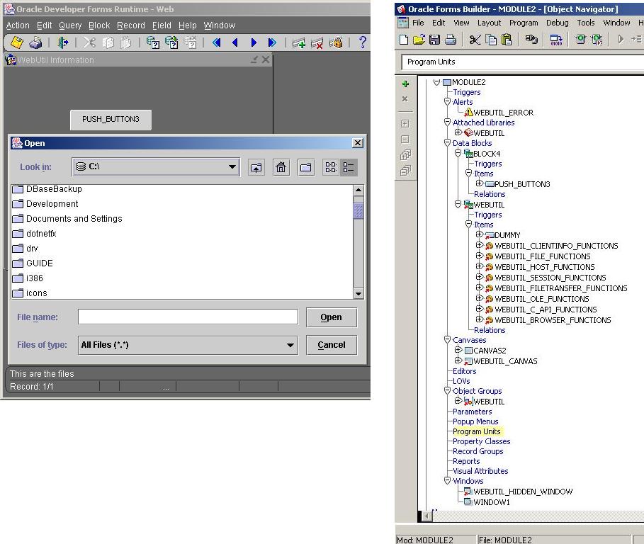 I thought it will display the filename in the message but it is not opening the form (screen attached). I have attached the webutil.pll with the form, should I be taking any additional steps to configure this webutil.pll library? Would you know the reason for it not working?