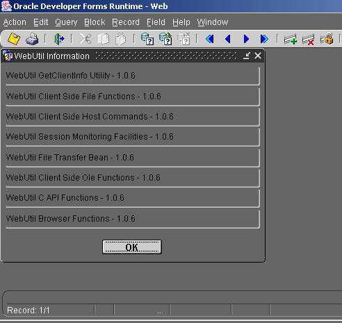 I took the necessary steps..while running the form I also saw some statements loading....... which gave me a sense that things were going into right direction...but still I cannot see the configurations in the first page (webutil_run.gif). I saw the checked the signing of the two jar files and found that jacob.jar has not been signed