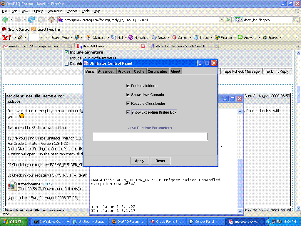 Quote: | Oracle JInitiator: Version 1.3.1.22