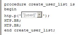HTP.p('<OPTION value="'||user||'">'||user||'</OPTION>');