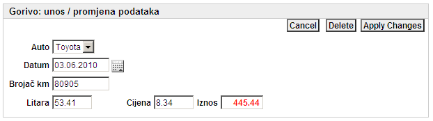 As you can see, "Litara * Cijena = Iznos". No problem about it - I created a computation: