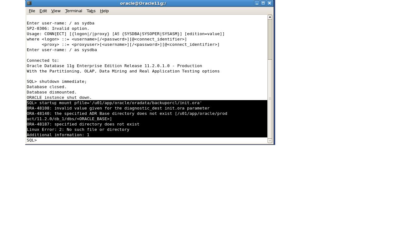Home » RDBMS Server » Backup & Recovery » Need Help (Oracle 11g, Release 2, Linux)