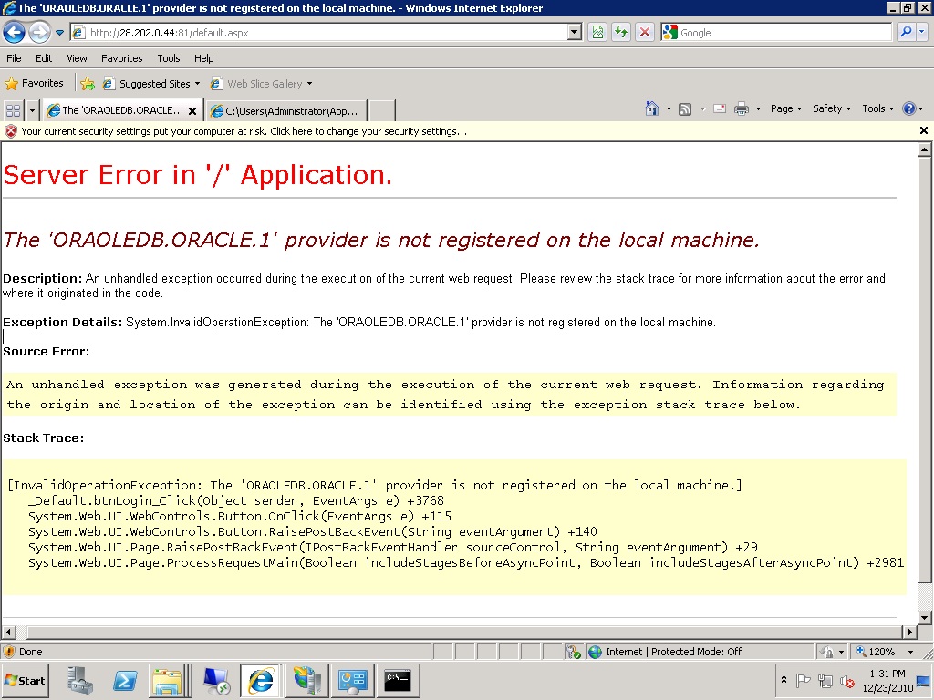 System.InvalidOperationException: The 'ORAOLEDB.ORACLE.1' provider is not registered on the local machine.