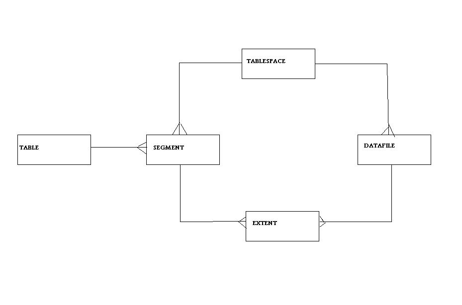 May i know what are the relationship between all_tables, dba_extents and dba_data_files?