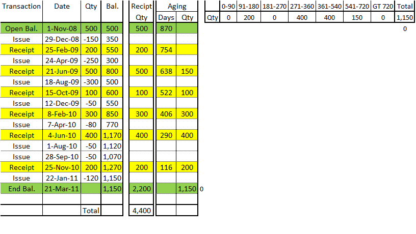 along with age_Days and receipt qty.I want to traverse this view to find out receipts which are lesser than stock ending qty.I want to consider those receipts which are below stock balance and if the last receipt qty is greater than stock balance qty it must take only partial qty of reciept to tally with stock balance.