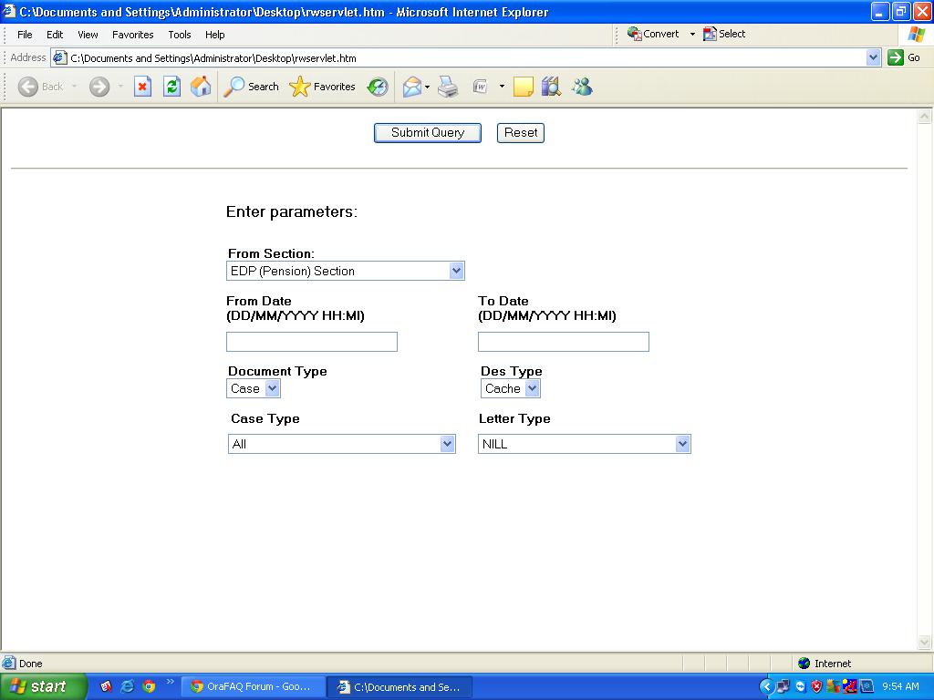 I did check from the source of that page and i found out where the submit query and reset button is and placed it at the bottom as per my requirement. But i don't know where the changed source should be saved. since if i run from the changed htm file the sumit query button is at the bottom, but if i run the report from the front end it is at the top without the changes.