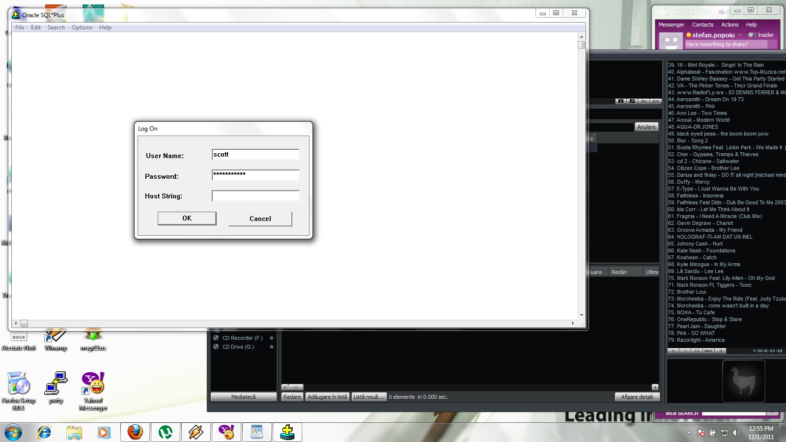 i use the user scott and the password ***** that i have just set it out when i\ve installed oracle. or i use "system" and the password *****. the scott user and system are unlocked.