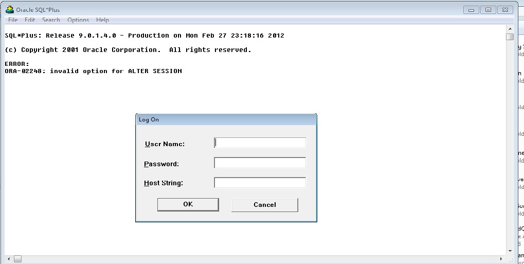 ORA-02248: Invalid Option for ALTER SESSION