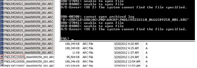 Michel, I don't think so: in the screen shot (which I know you probably haven't been able to view) Oracle is looking for a filename with the 6 digits. The screen shot shows several filenames that look like archive logfiles, with dates and sizes. There is a group of consecutively named files numbered up to 226509 then another group numbered from 26510. Furthermore, file 226510 is only a few K, the others are several M.