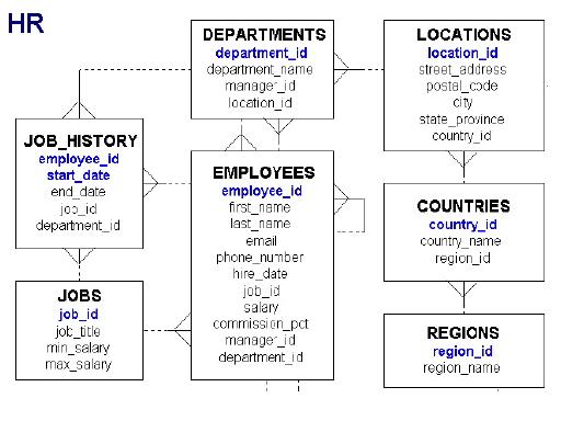 1) departments.manager_id references employees.employee_id. Employees.department_id references departments.department_id. You'll need to create the fks after both tables have been created.