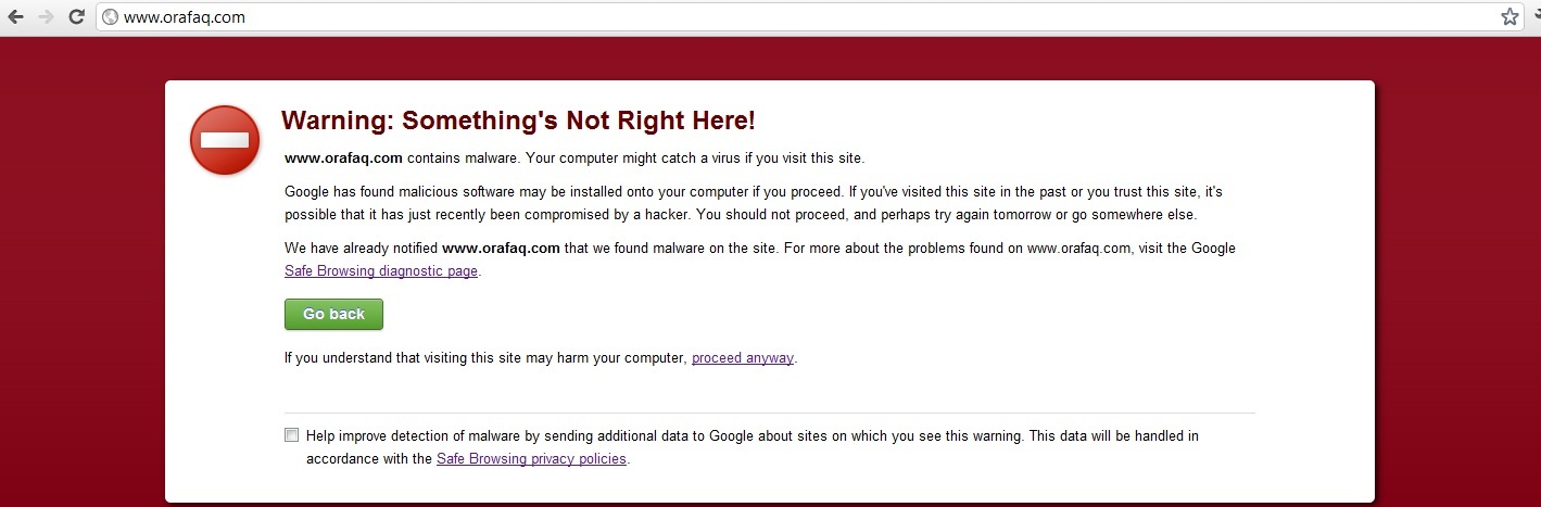 This web page at www.orafaq.com has been reported as an attack page and has been blocked based on your security preferences.
