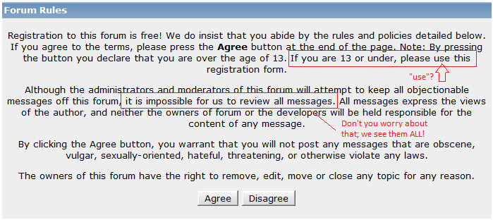 I guess that there's a mistake in the text (regarding "underage" people (younger than 13)) - have a look at the screenshot. They are NOT supposed to "use" this registration form, but "leave" it.