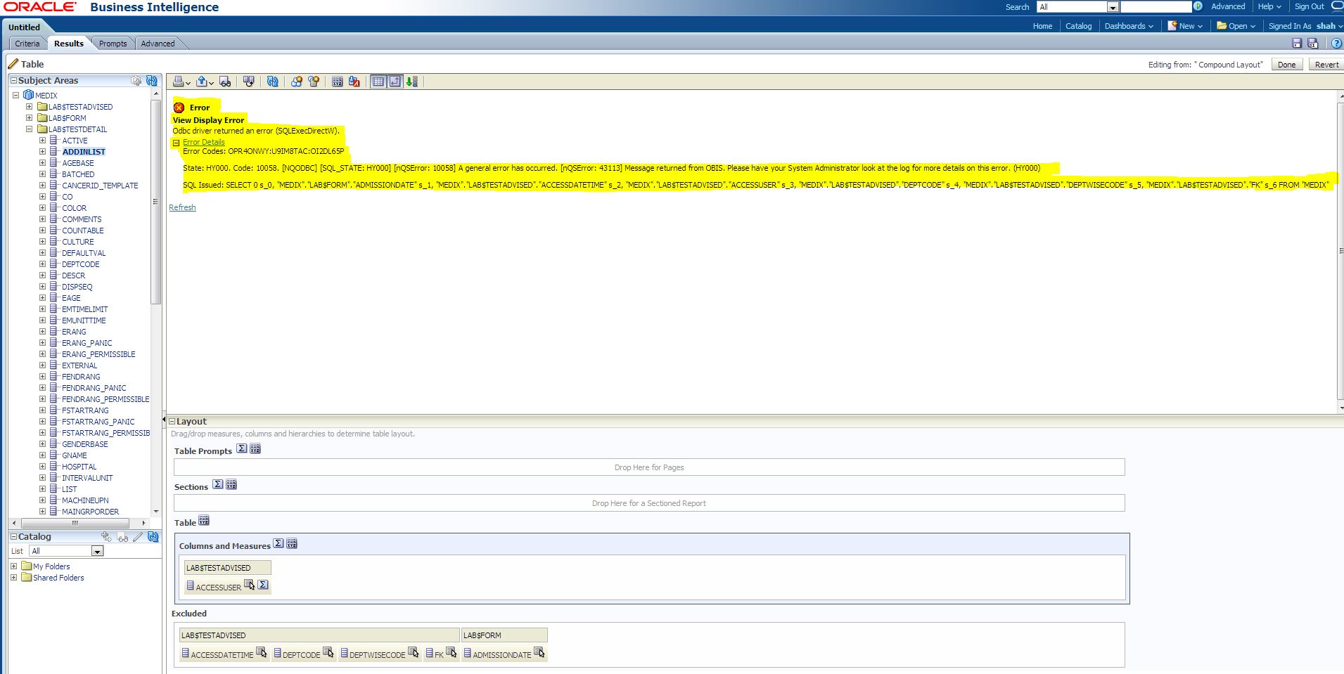 Home » Fusion Middleware & Colab Suite » Business Intelligence » Odbc driver returned an error (SQLExecDirectW)