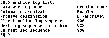 1) I placed the backup archives in E:\archive\ (log_archive_dest_1)