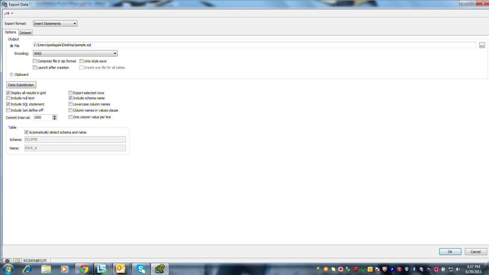 so for that i am write one query(select *from reseller)in itg server,then all the records are displayed in grid output,right click on data one of the option in toad i.e 'export the data' here i am choose 'sql insert' and specify file name.sql and select all column field then click on ok then automatically all records are generated with insert statement,then after execute this all insert statements in development server so that time this toad error is occure,if any alternative way is there to resolve this problem so please help me,and also there is no sql grants to me in itg server.please find screen shot.