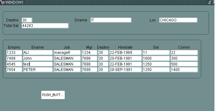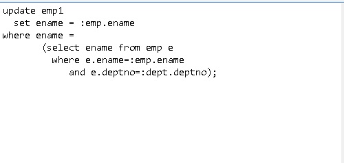 I have master-detail form I would like to update the emp1 table on the base of current value of dept table deptno and emp table ename .