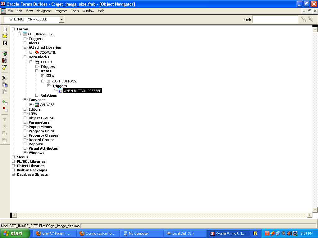 i m using get_file_name built-in on when-button-pressed trigger and save image in database BLOB datatype, every thing is going smoothly but i have a requirement that if load size is more then 25 kb then user unable to save this image with