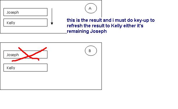 on A: there are 2 records Joseph and Kelly the second, when i navigate using Key-down from Joseph to Kelly, on B must change to Kelly but it's remaining Joseph. (Attached File)