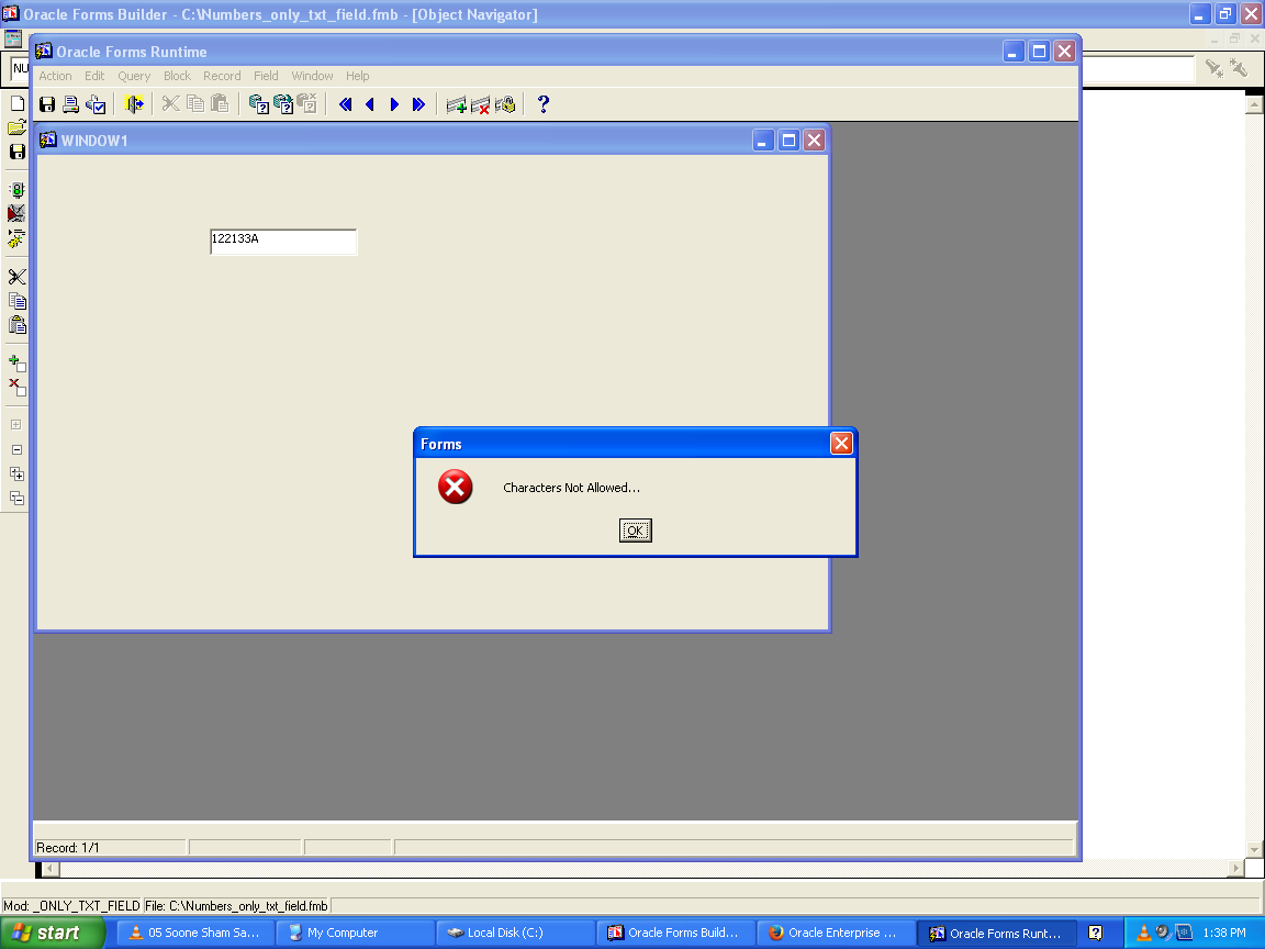 and BLOCK LEVEL Create text item suppose "Enter_num" in property data type "char"