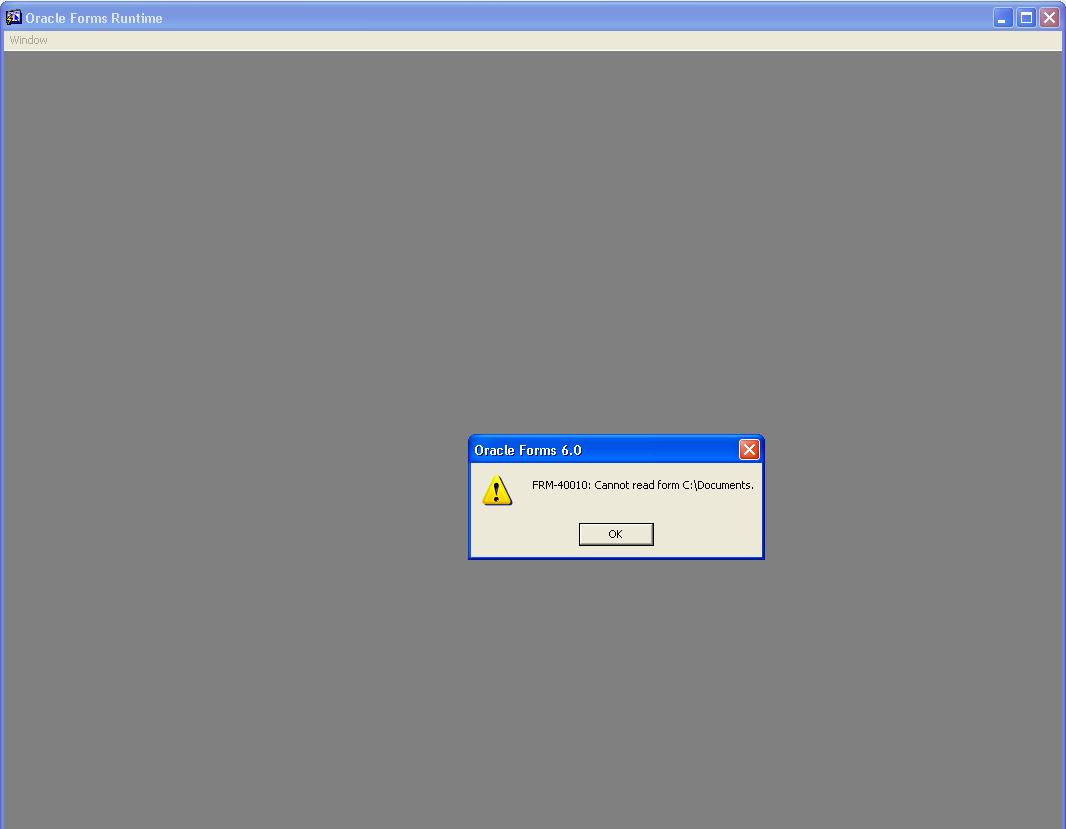 Home » Developer & Programmer » Forms » FRM-40010 Cannot Read form C:\Documents (Developer Suite 6i (Forms 6i))