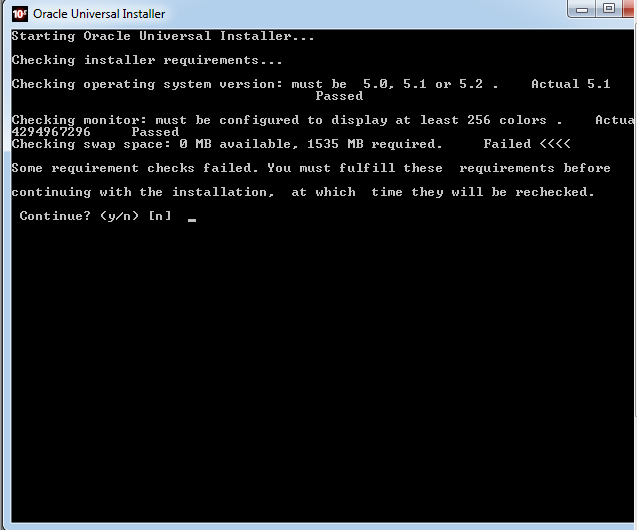 Read the message: OUI thinks that you should have a swap file, and you do not have a swap file. So either create one and continue, or do not create one and continue. It is really up to you.
