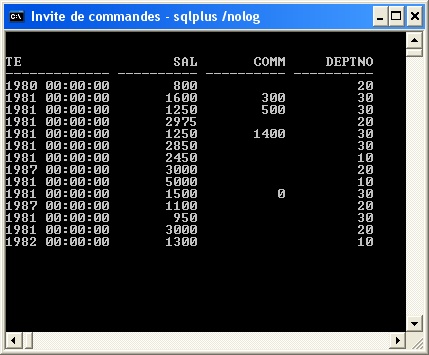 cookiemonster wrote on Wed, 07 October 2015 15:18vertical scroll sure, horizontal not so much, unless you're running the old gui sqlplus. If you're running it from cmd or putty or similar it'll just wrap the lines.
