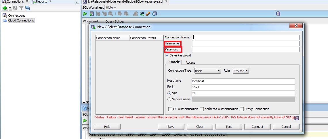 I am new learner for Oracle. I installed Oracle database 12c several times. But before starting my first query, I can not initiate the ORACLE SQL DEVELOPER. I always fail to enter User and Password for ORACLE SQL DEVELOPER.