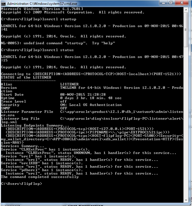 LSNRCTL for 64-bit Windows: Version 12.1.0.2.0 - Production on 09-NOV-2015 01:04
