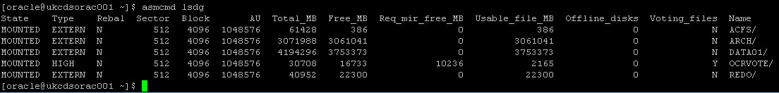 ACFS 61428 MB EXTERNAL REDUNDANCY