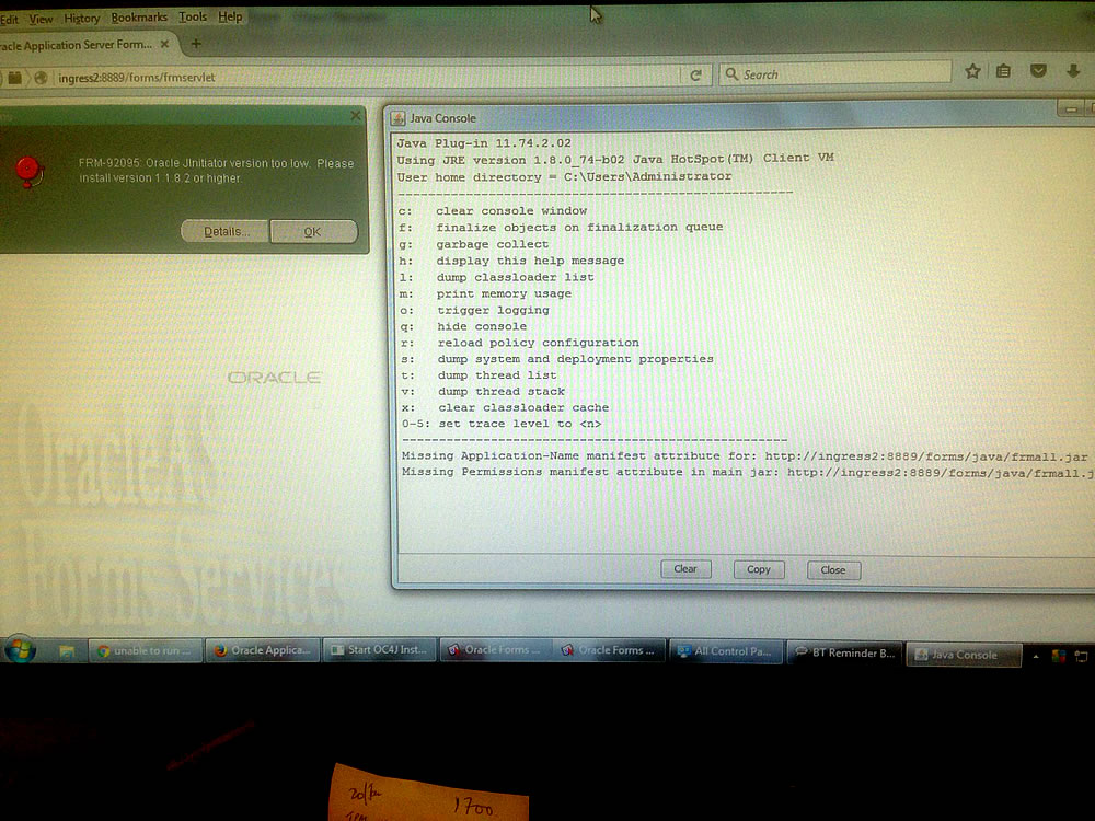 FRM-92095: Oracle JInitiator version too low. Please install version 1.1.8.2 or higher.