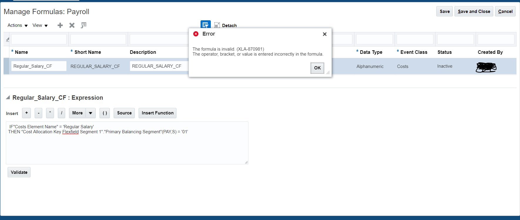 Home » Applications » Oracle Fusion Apps & E-Business Suite » Issue while creating payroll subledger custom formula(not a fast formula) creation (Fusion HCM Payroll)