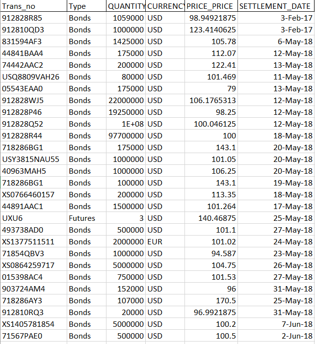 So is this correct approach? I hope I have explained the requirement correctly. ( I have attached the VALUES of all trans_no,quantity, price_price , settlement_date in the attachment, please check.)