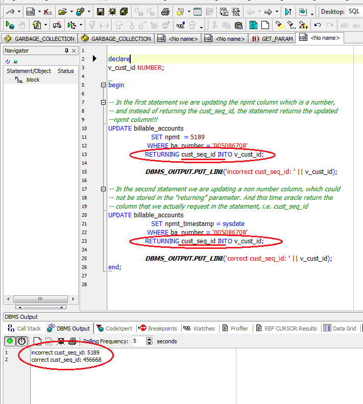 | RETURNING clause returns wrong value upon UPDATE statement [message #677484] |