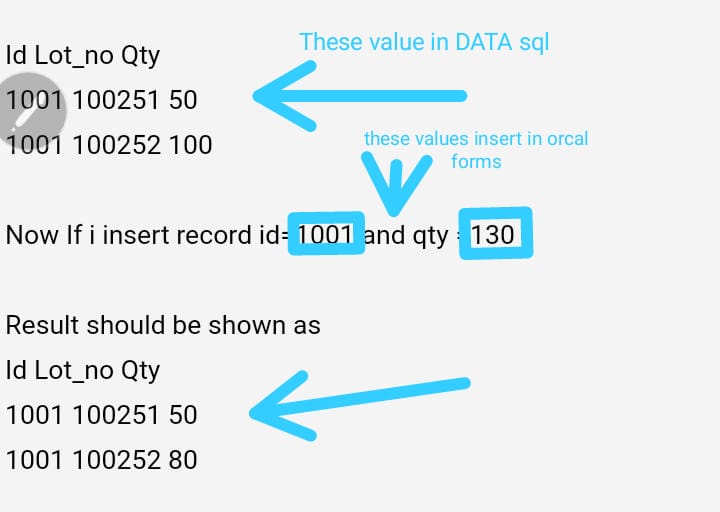 Sir. sorry i could not able to describe you. That's why I try to describe you in picture .If i insert the value Id and qty in oracle forms.