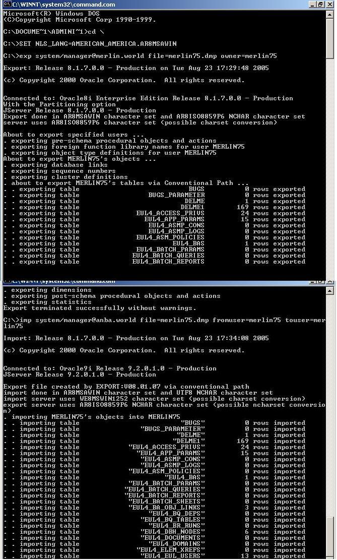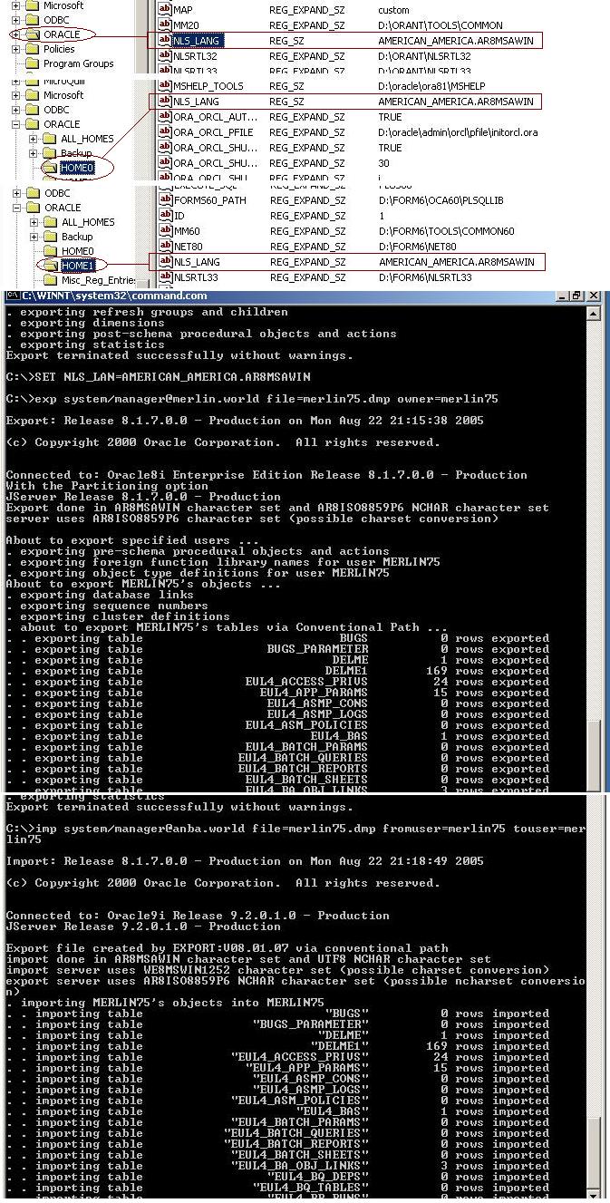 1- You can see that the characterset is same in source database and for this set I have NLS_LANG entry in the registry of the old server as AMERICAN_AMERICA.AR8MSAWIN