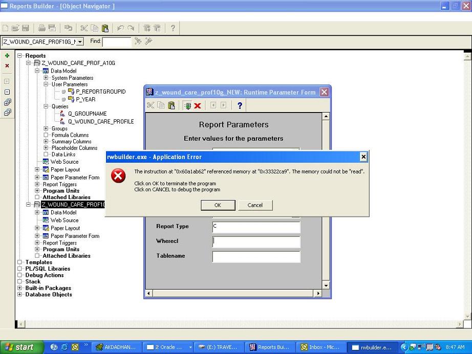 REP-1401:'afterpform': Fatal PL/SQL Error Ocurred.