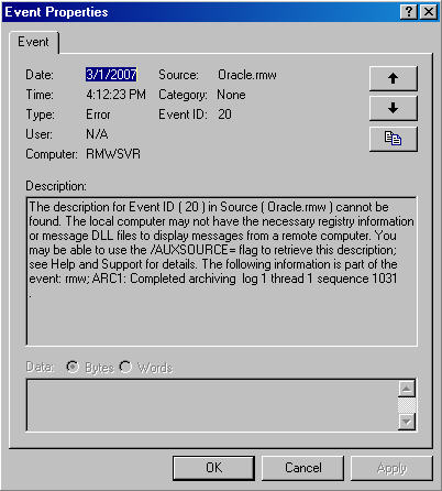 Home » RDBMS Server » Backup & Recovery » I found application error. When set archive logs.