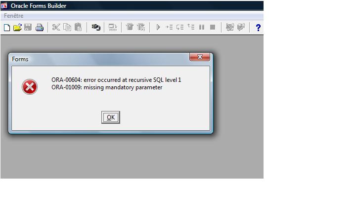 I am getting the error ora-00604 and ora-01009 when I try to connect from Forms builder 10g.